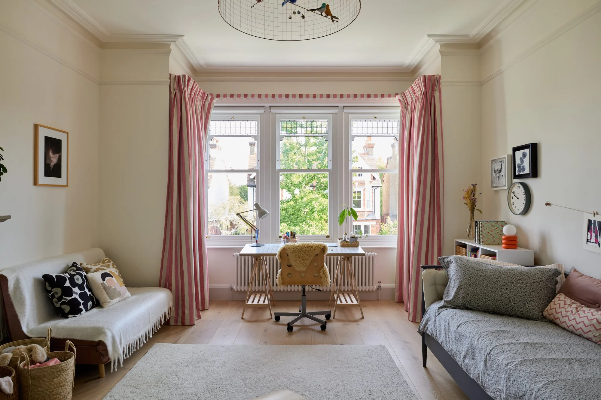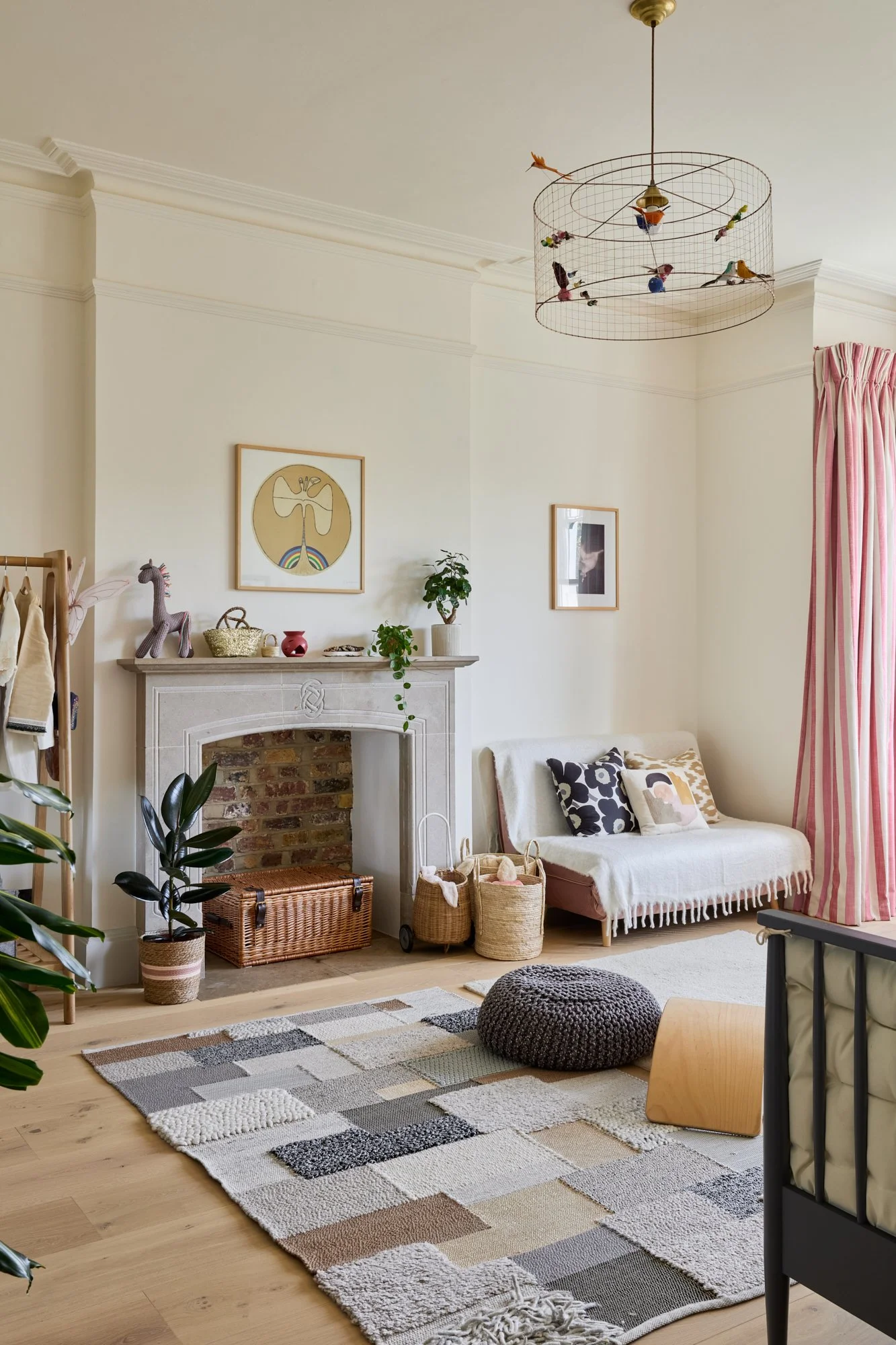 Create clear zones: one for sleep (I love using daybeds), one for dressing (accessible wardrobe or shelves), one for work (a child-sized desk or table), and one for play (an open floor area with a small selection of toys). Defining these areas gives children a sense of order and purpose within their room.